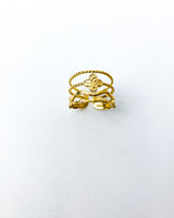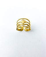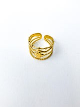 Anillo dorado cuatro formas. Acero bañado en Oro.