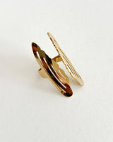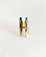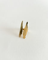 Anillo de alas ancho perforado con líneas. Acero bañado en oro. Un anillo muy estiloso que envuelve el dedo.