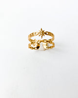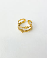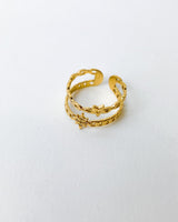 Anillo de doble hilo diferente y con dibujo de estrella y brillante. Acero bañado en Oro.
