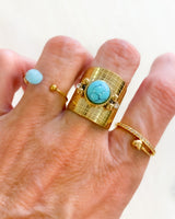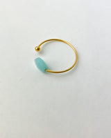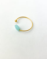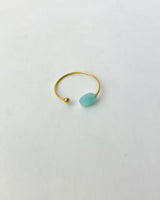 Anillo fino y elegante envolvente en el dedo con piedra en un estremo de color azul turquesa. Acero bañado en Oro.