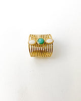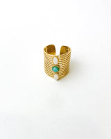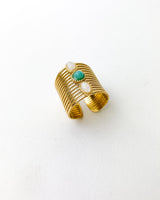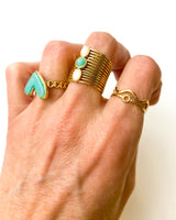 Anillo de hilos dorados con piedra natural turquesa redonda. Acero con baño de oro.
