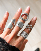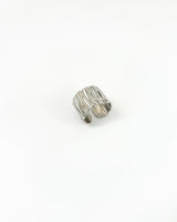 Anillo de finas piezas alargadas. Acero. Un anillo muy estiloso que envuelve el dedo.
