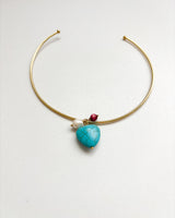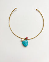 Collar chojee con corazón turquesa veteada y pequeña cuentas. Acero bañado en oro.