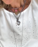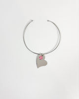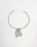 Collar Choker con corazón grande de acero y piedra rosa. Acero.