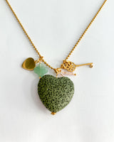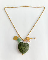 Collar de cadena gruesa y eslabones largos con corazón grande volcánico en negro.