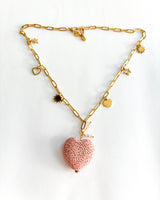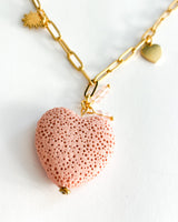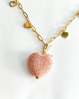 Collar de cadena gruesa y eslabones largos con corazón grande volcánico en rosa palo.