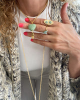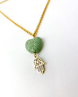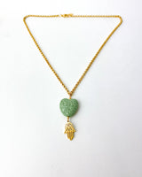 Collar de cadena gruesa y eslabones largos con corazón grande volcánico en color verde.