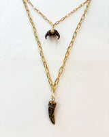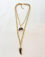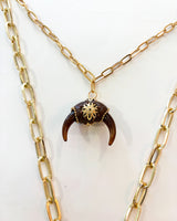 Collar doble cadena y cuernos marrones con fornituras. Cadena de eslabones. Precioso collar.