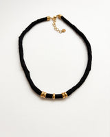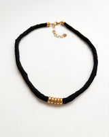 Collar gargantilla de trapillo negro con piezas doradas. Acero bañado en Oro
