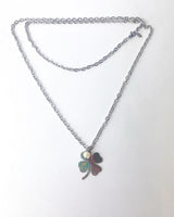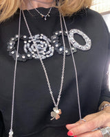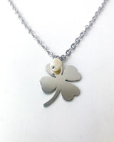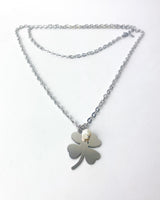 Collar largo de gran trébol de la buena suerte con perla. Cadena de eslabones gruesos.