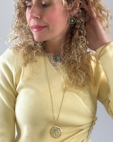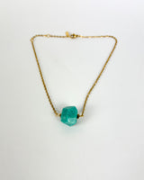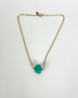 Colgante con piedra natural en color verde. Cadena de eslabones finos. Acero bañado en Oro.