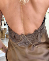Body charm de cuerpo en dorado con pequeño corazón central.