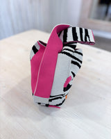 Bolso de tela de punto elástico en color fucsia y negro. Asas cortas.