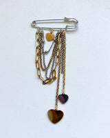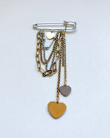 Broche imperdible de acero con cadenas de diferente grosor, estrellas, corazón en dorado y plateado. Un complemento perfecto para dar un toke a tus looks.