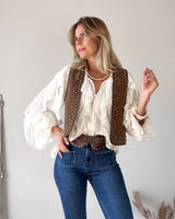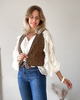 Chaleco acolchado metalizado con capucha y abertura en los laterales con goma. Reversible de color blanco. Cinta de colores en la cremallera.