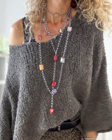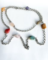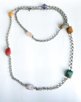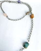 Collar largo de cadena gruesa en acero con piedras naturales de color. Collar muy vistoso