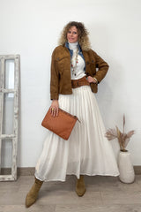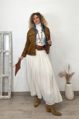 Falda larga beige con una preciosa caída y forro interior. cinturilla de goma. Una falda preciosa de tejido muy bonito.
