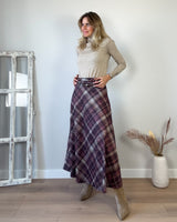 Falda larga de cuadros en tonos rosados y crudo con preciosa caída. Una falda preciosa de tejido muy bonito.