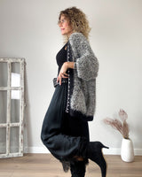 Falda larga satinada color negro. Corte suelto con detalle de encaje en la parte baja. Cinturilla de goma.