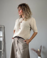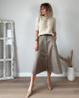 Falda larga color piedra de antelina. Cinturilla con goma trasera y corte suelto. Bolsillos laterales. Una falda preciosa de tejido muy bonito.