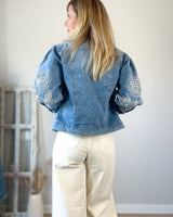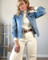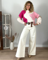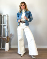 Jeans claro de pierna ancha y cuerpo ajustado. Pierna ancha y tiro alto. Tejido muy blando y cómodo.