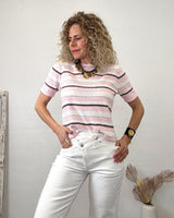Jeans blanco de corte recto y cinturilla a doble altura. Tejido blandito y elástico.