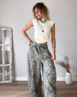Jeans animal print tipo balloon amplio. Corte suelto. Un pantalón de tejido muy blando y mucha caída. Un modelo muy chulo.
