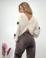 Jersey negro ajustado con una lazada en el centro.