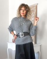 Jersey gris de corte amplio y recto. Muy suave y agradable con algo de pelo. Cuello redondo.