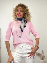 Jersey rosa de media manga y corte basico. Elastico en puños y cintura.