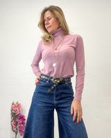 Jersey rosa de cuello alto básico. Tejido elástico.