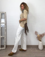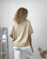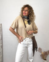 Jersey tostado de media manga y corte desigual. Elastico en puños y cintura.