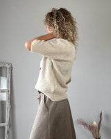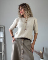 Jersey tostado de tejido muy agradable. Manga corta. Cuello redondo.