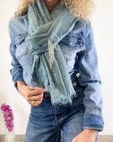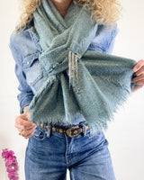 Pañuelo grande azul con pequeñas lentejuelas. Tejido muy suave.