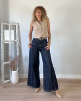 Jeans azul claro de corte amplio muy bonito en piezas. Pierna ancha y tiro alto. Tejido muy bonito y cómodo.