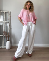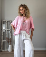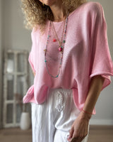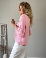 Jersey rosa cuello barco. Manga francesa acampanada. Corte amplio.