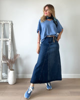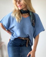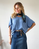 Jersey azul barco. Manga francesa acampanada. Corte amplio.