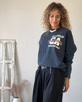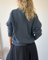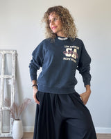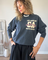 Sudadera gris desgastado con letras beige y granate. Talle medio y elástico