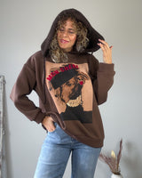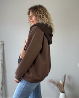 Gorro capucha marrón chocolate con doble botón en la parte delantera.