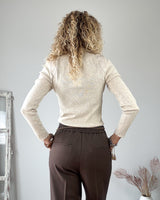 Pantalón color marrón de corte clásico. Cinturilla con goma en la parte trasera. Bolsillos laterales y traseros.