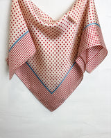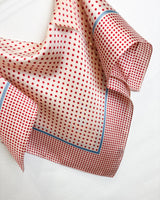 Pañuelo rosa con pequeños lunares rojos. Tejido tipo satinado.