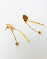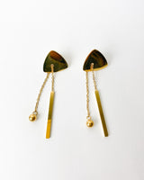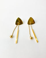 Pendiente largo dos hilos de cadena. De una cuelga una bola y de la otra un palo.
