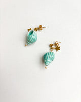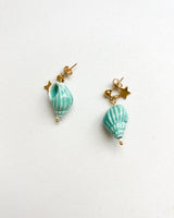Pendiente largo de piedra de cerámica caracola verde agua.