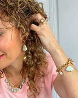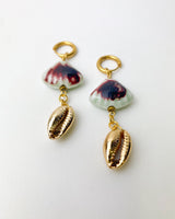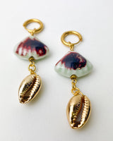 Pendiente largo de piedra de cerámica y caracola dorada.