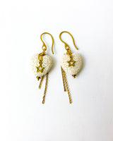 Pendiente largo de corazón volcánico con cadena colgante y estrella.