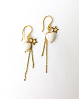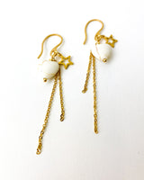 Pendiente largo con corazón beteado blanco, cadenas largas y estrella superpuesta en el corazón. Una preciosidad.