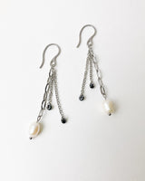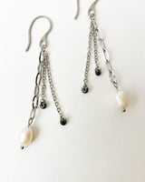 Pendiente largo con perla y cadenas de diferente grosor, cadenas largas y estrella. Una preciosidad.