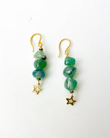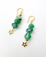 Pendiente triple largo de piedra de Agata verde.
