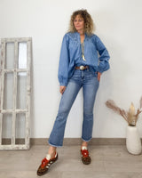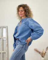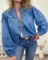 Camisa vaquera denim bordada en color azul claro. Corte amplio. Una delicia de blusa.
