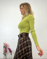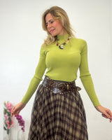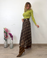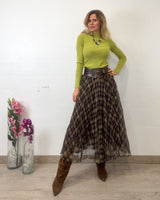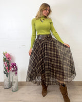 Falda larga de tul y cuadros en color verde y marrón. Tejido arrugado y forro interior negro. Una falda preciosa de tejido muy bonito.